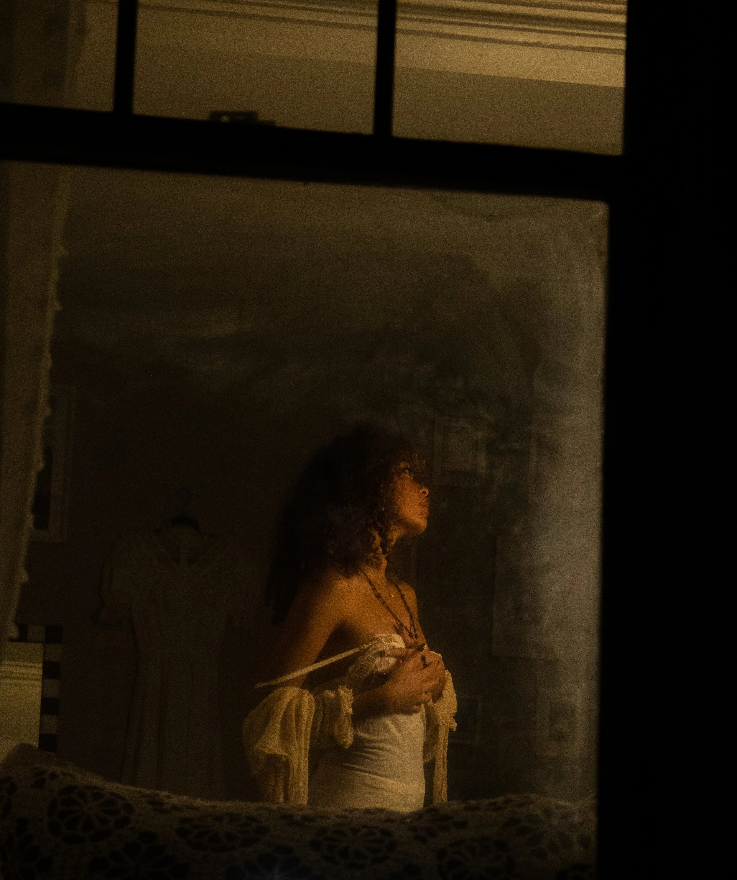 This shoot brings nightmares to life, capturing the fear and vulnerability of being watched and perceived beyond one’s control. Drawing from my own unsettling experience of a neighbor admitting he watches me through my window, the imagery delves into the paranoia of losing autonomy over our body and personal space.