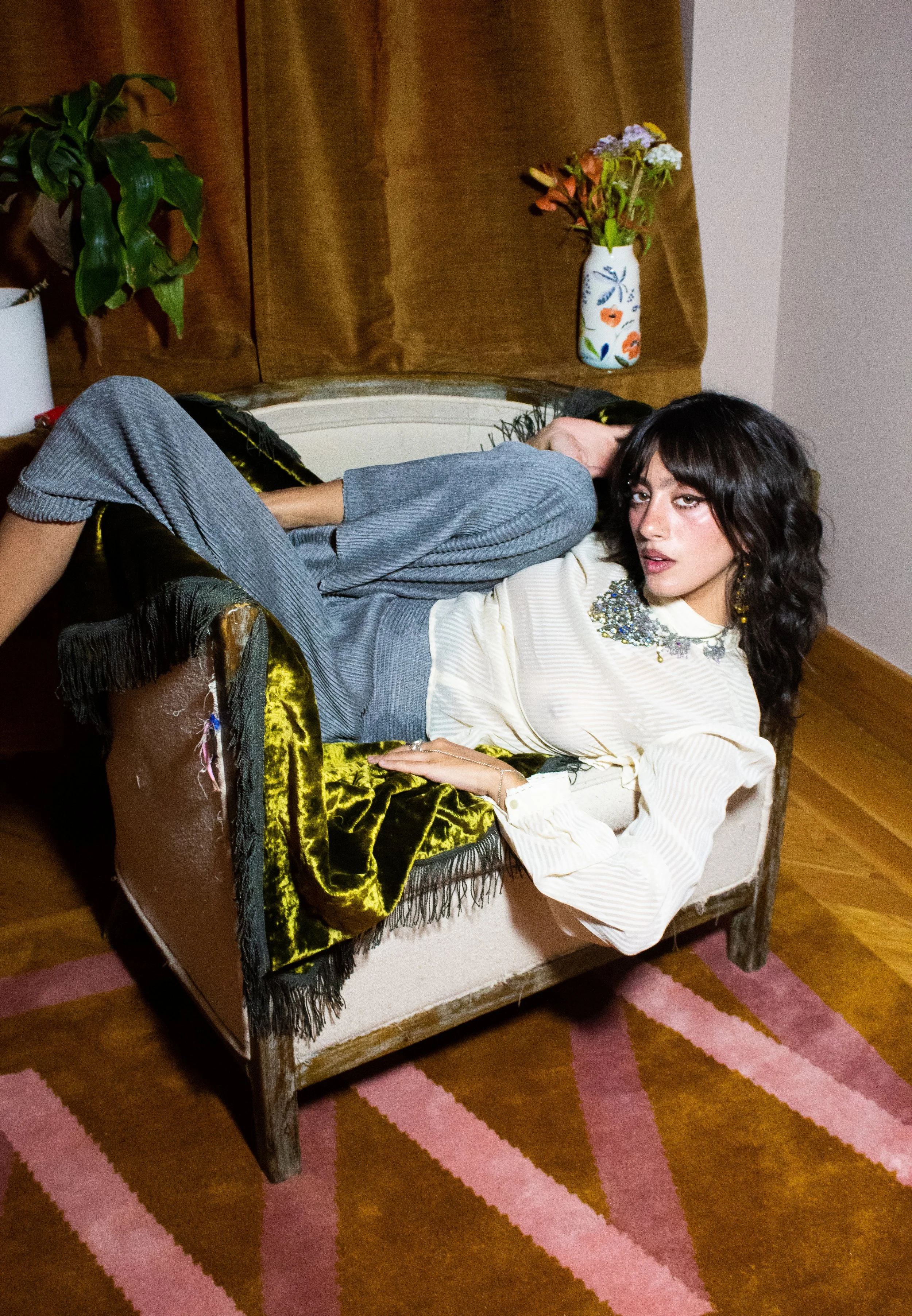 Yarden is my best friend from high school and my muse. Since we were thirteen, we’ve draped sheets across sofas, adorned ourselves with fabric and jewelry, experimented with makeup, and transformed her Upper West Side living room into our own editorial studio.