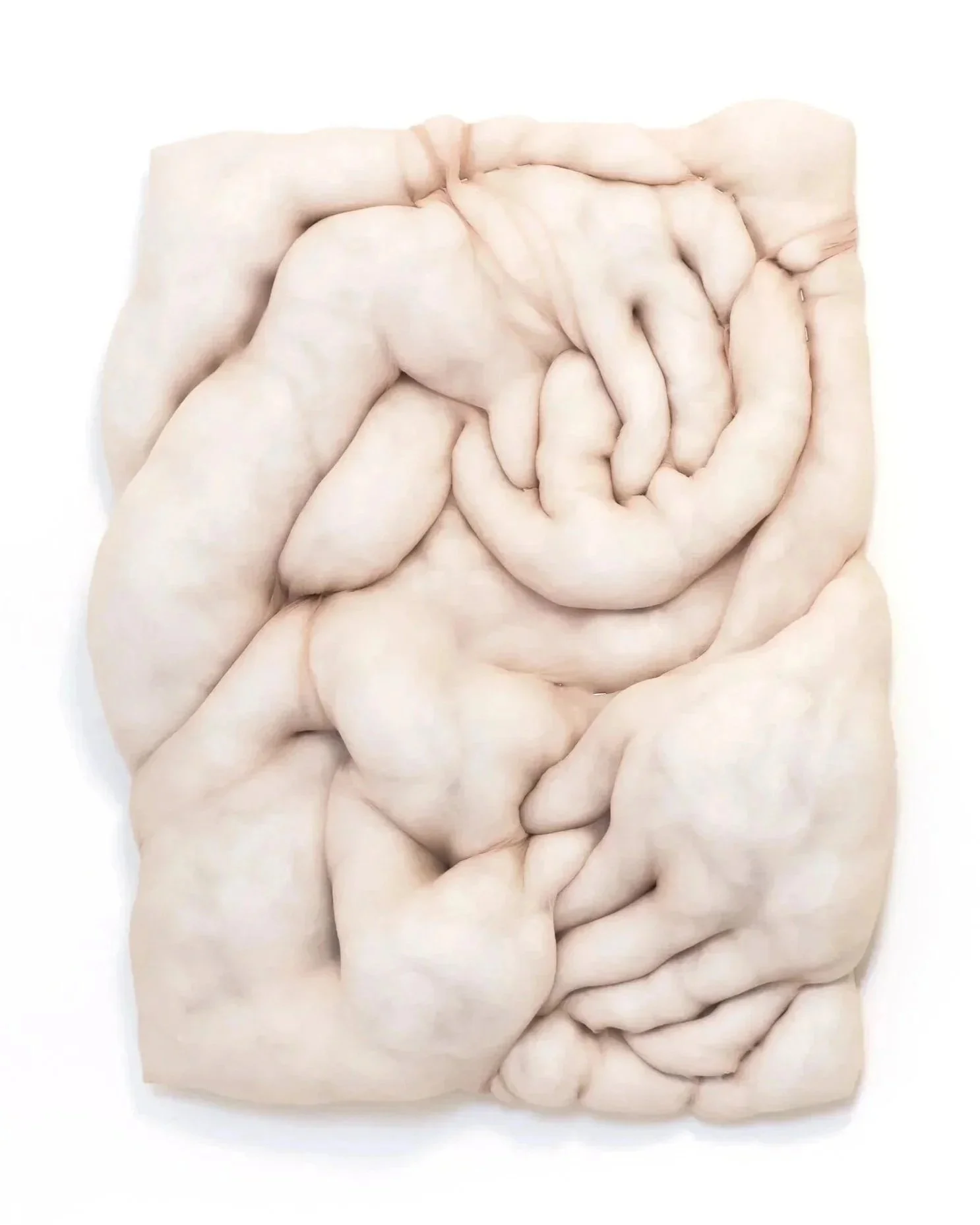 Mesh fabric, stuffing, staples, & wood. 18” × 24” each